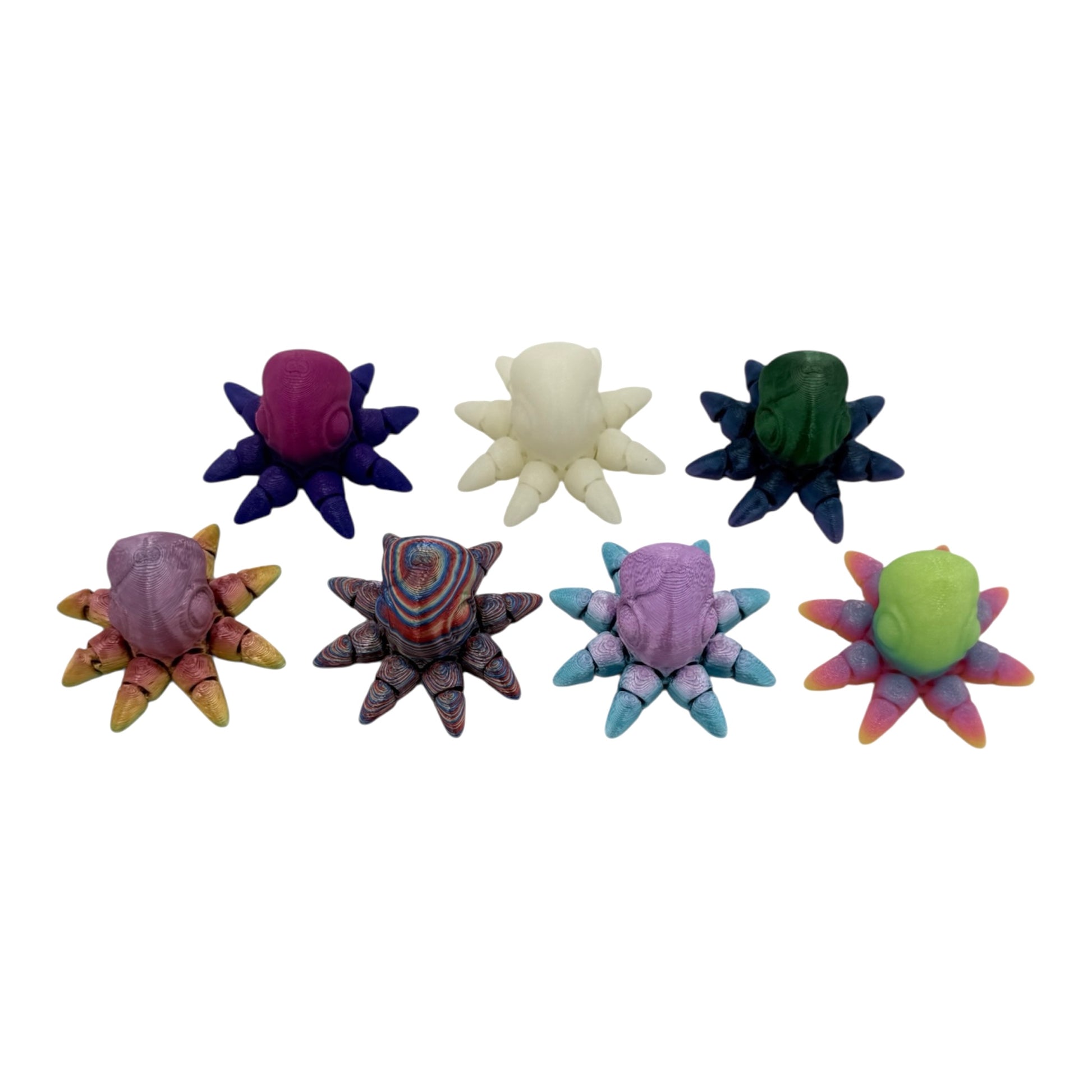 Bring a touch of the ocean to your collection with our 3D Printed Mini Octopus! Measuring just 1.5 inches, this tiny yet detailed cephalopod fits right in the palm of your hand. Its small size makes it a delightful addition to any marine-themed collection, a quirky desk accessory, or a fun fidget toy. This listing is for 1 mini octopus. Use the menu to select from available options.ย