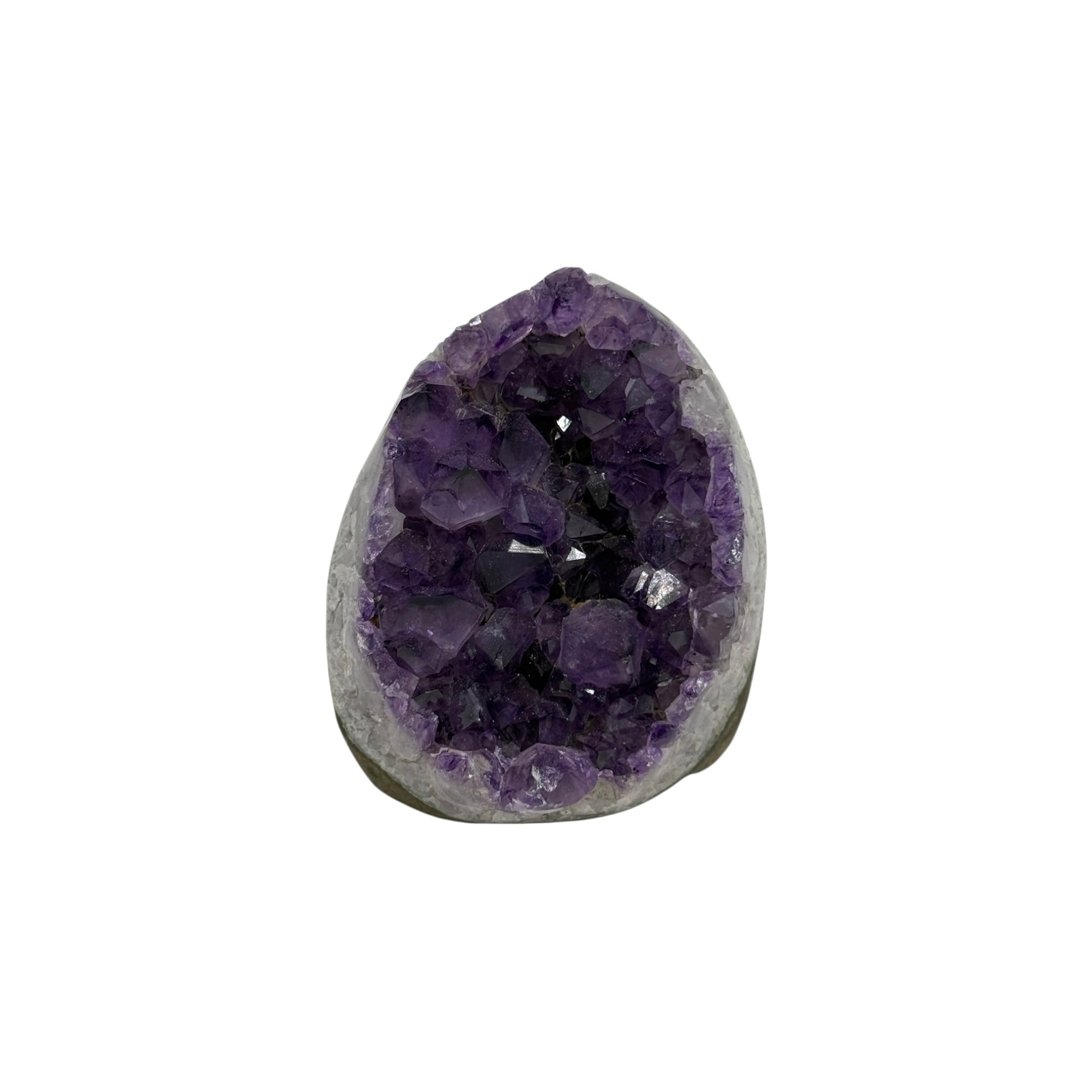 Bring the natural beauty and energy of crystals into your home with an Amethyst Geode, featuring a stunning purple quartz front and a natural unpolished back. Each piece highlights the striking crystalline structure of amethyst, making it a unique display for your shelf, desk, or meditation space.