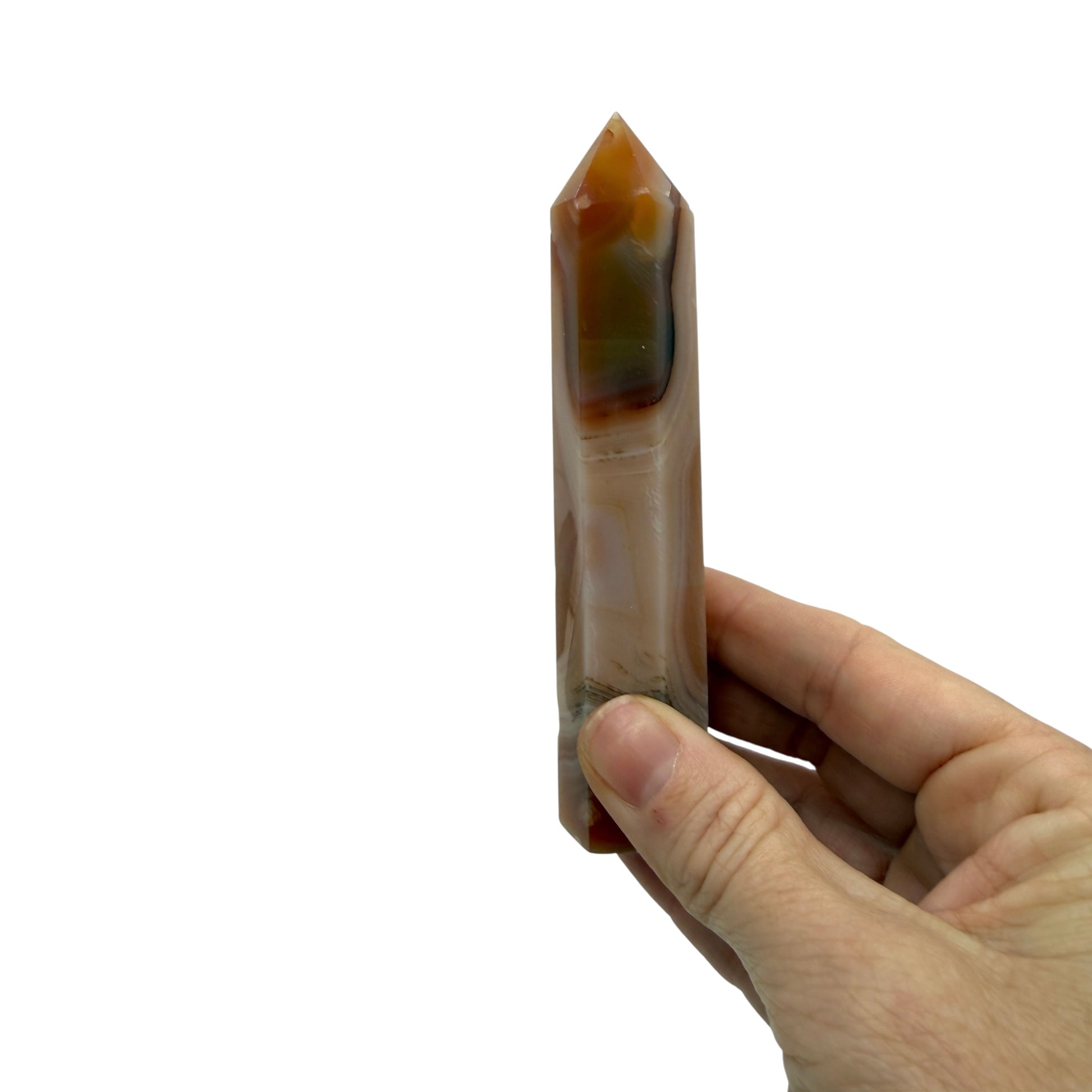 Our polished crystal towers are expertly shaped into six sided points that highlight the natural beauty of each stone. Every tower is carved from genuine mineral material and polished to enhance color, pattern, and internal structure. These freestanding points make striking display pieces for shelves, desks, classrooms, and collections.