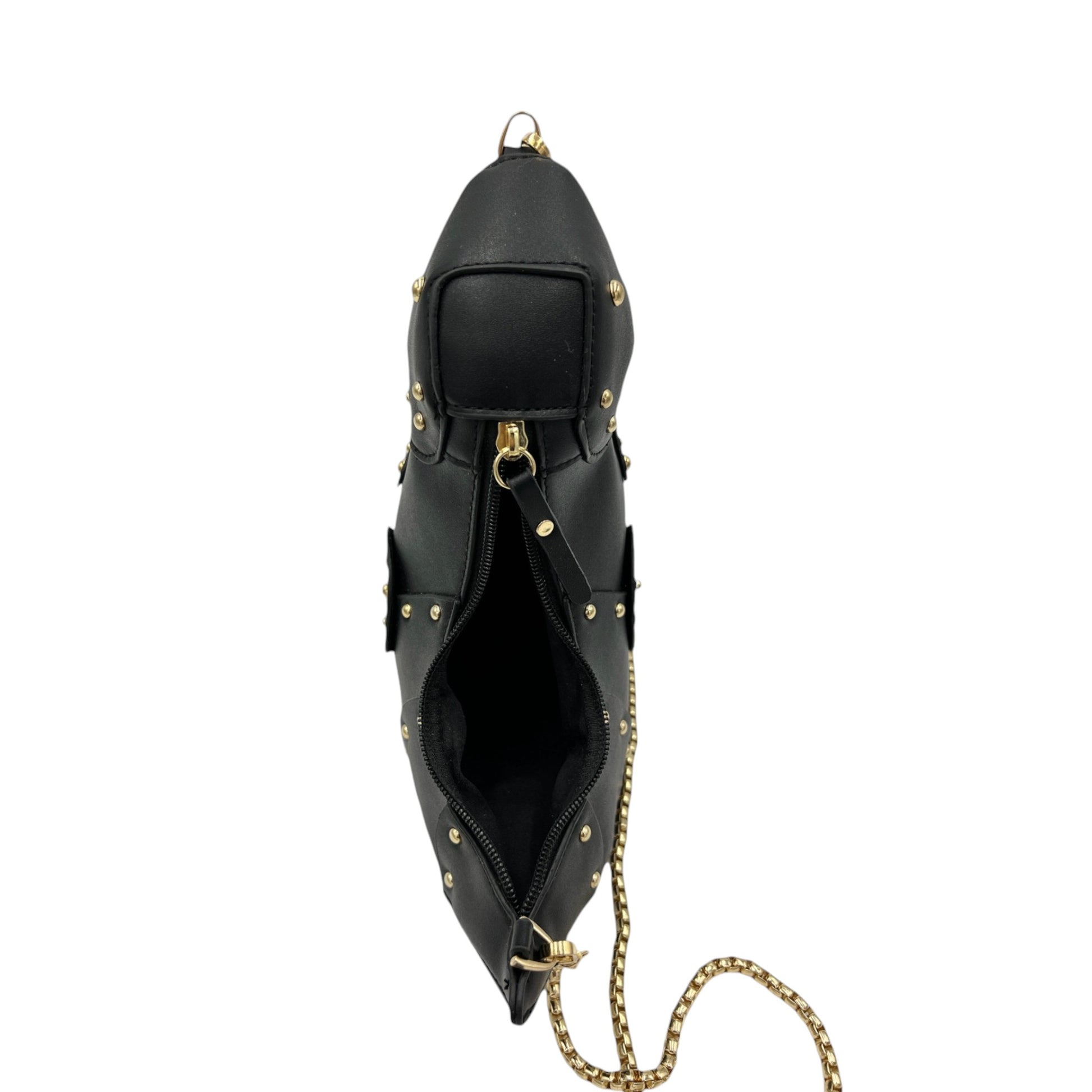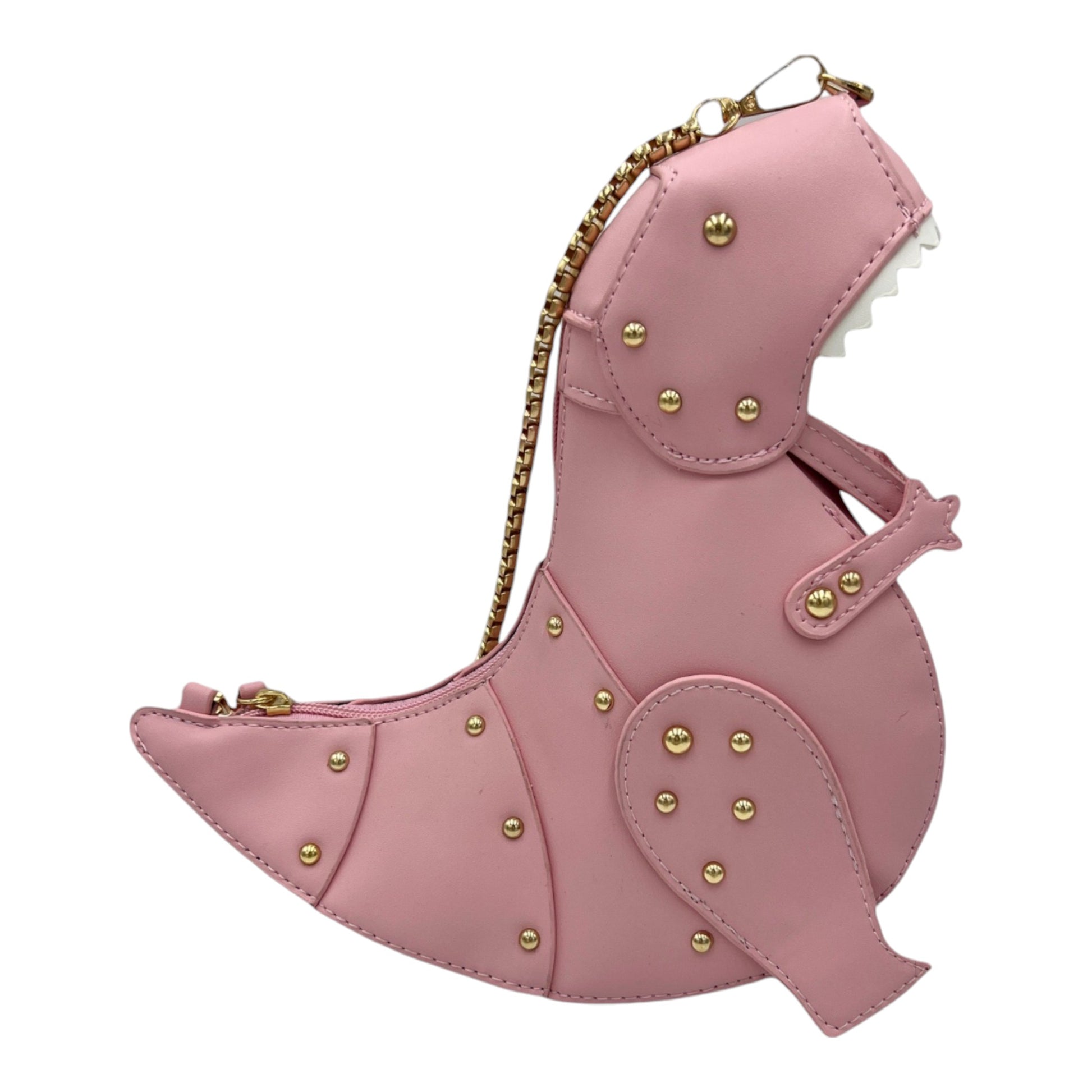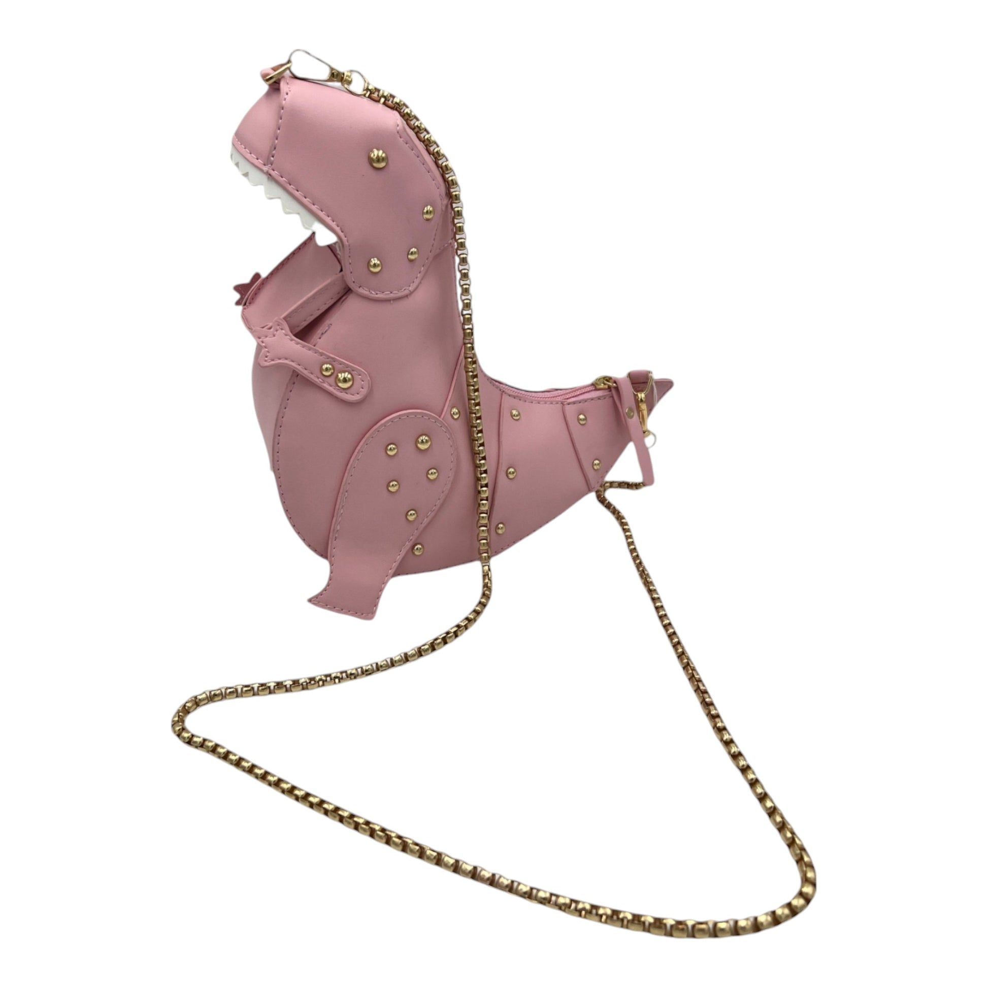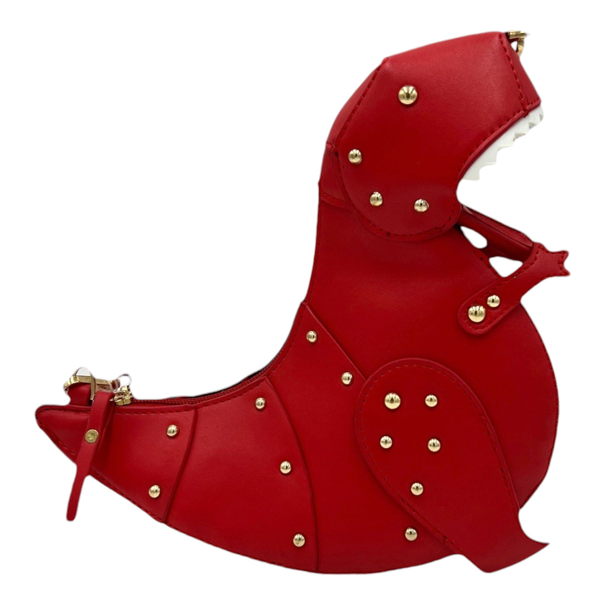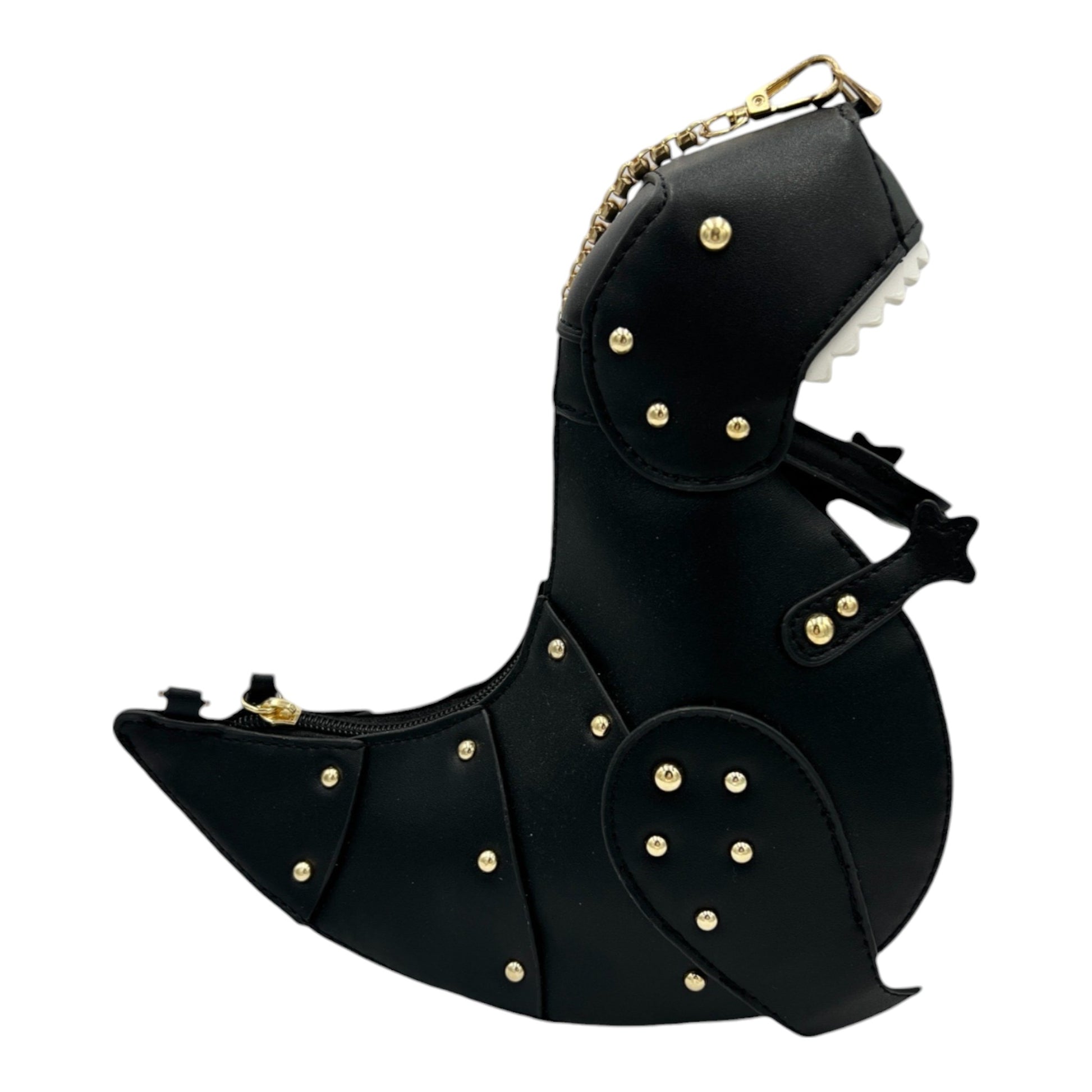 This Tyrannosaurus Rex purse is made from faux leather with golden studs and includes a removable golden chain strap that is approximately 43 inches long. It's lightweight and easy to carry on your shoulder or crossbody. It's big enough to hold a cellphone, wallet, and more! Approximate dimensions are 9.5 inches x 9.75 inches x 4.5 inches. This listing is for 1 T-Rex purse. Use the dropdown menu to select from available options.
