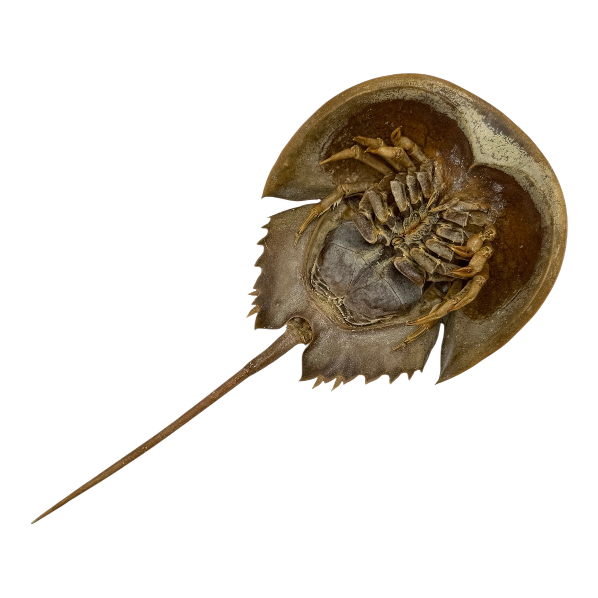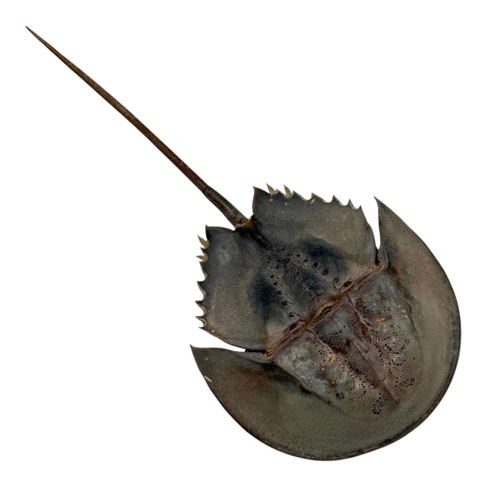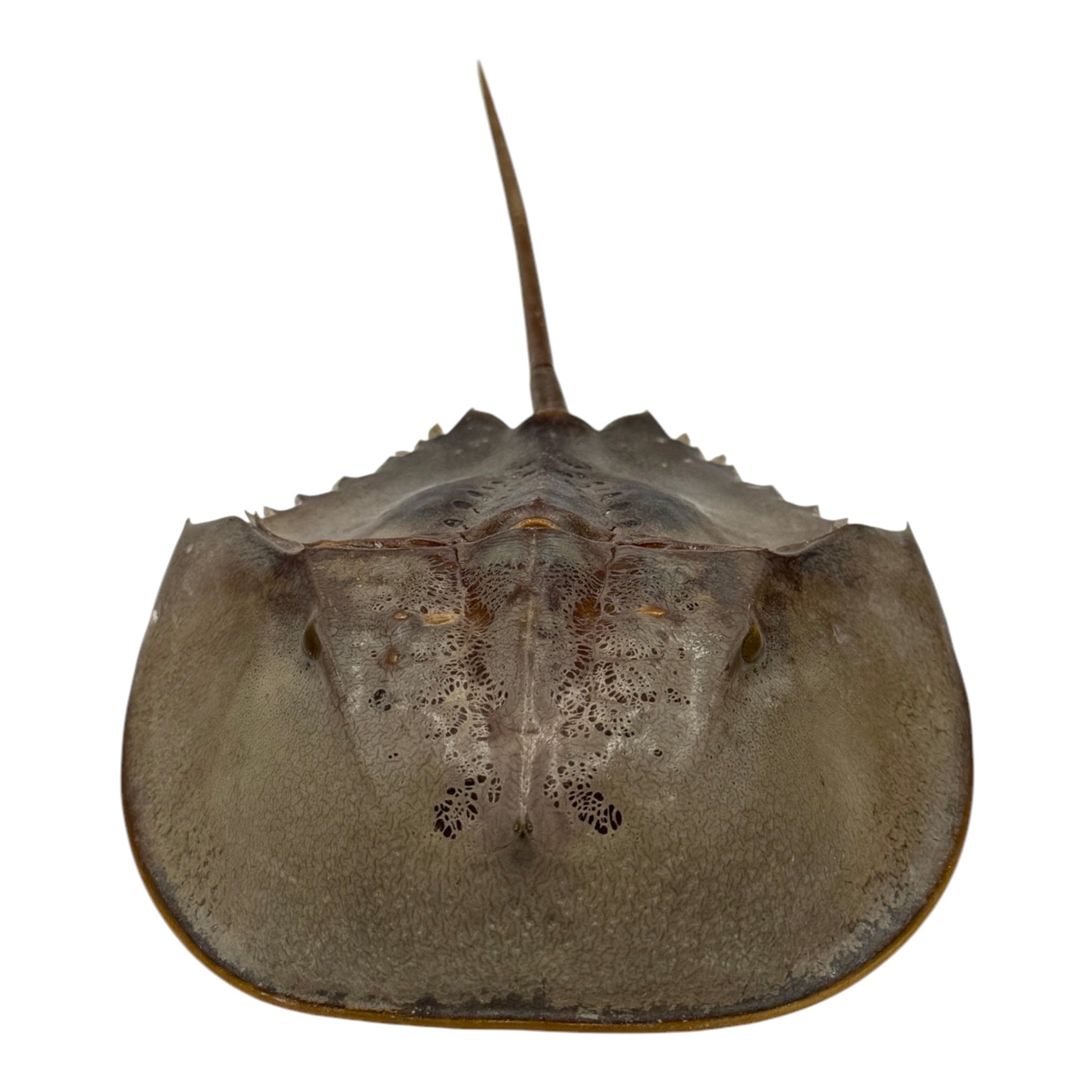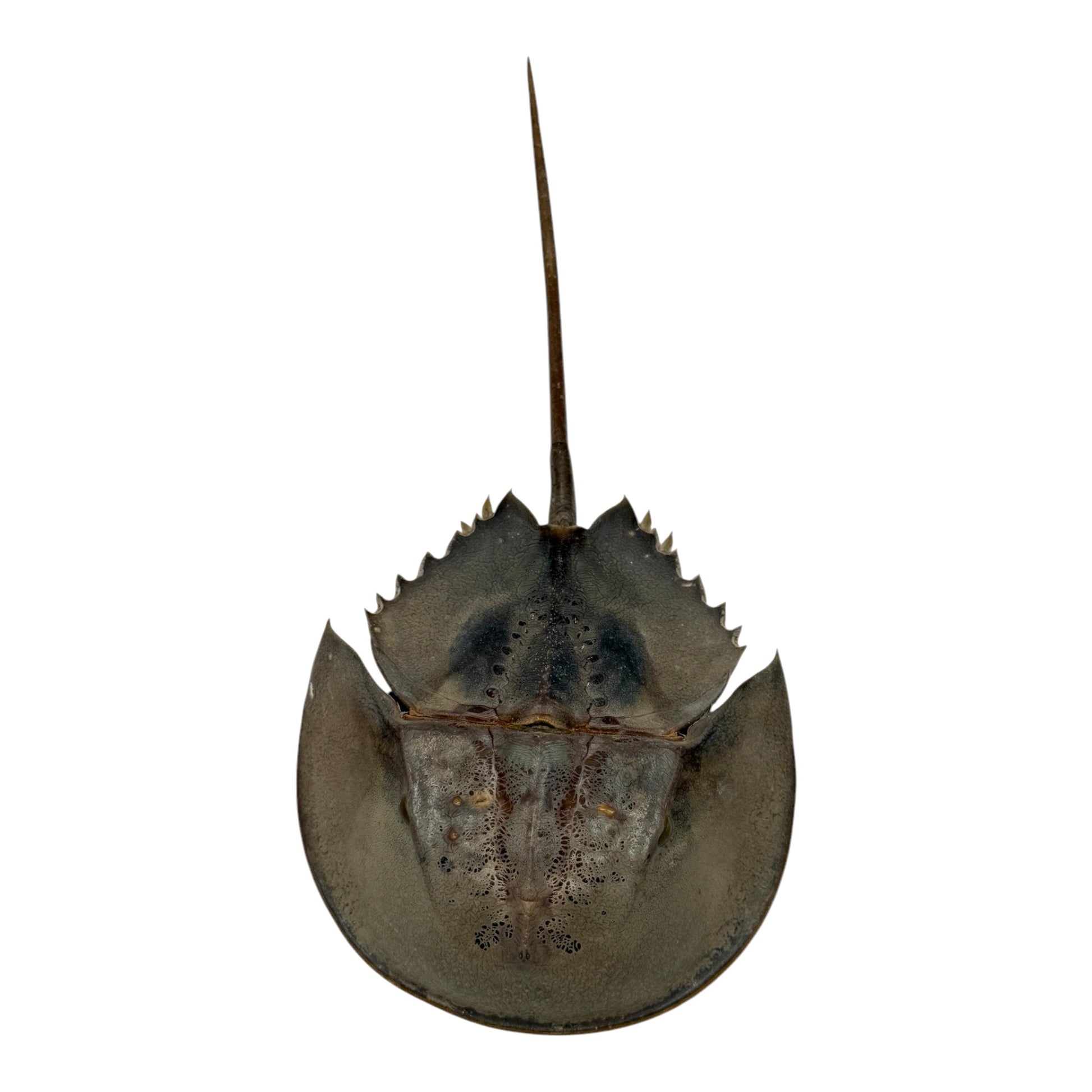 Own a real horseshoe crab exoskeleton, ethically sourced and naturally shed during molting! These ancient creatures have existed for over 450 million years. Despite their name, horseshoe crabs are more closely related to spiders than crabs. Their blue blood is vital for medical research, helping ensure vaccine safety. Perfect for educational displays, marine enthusiasts, or unique decor. Pictures are representative of what you will receive, but each molt is unique, showcasing intricate details of this prehistoric species. Most molts have some legs but not all legs. For reference, the specimen pictured is approximately 4.25" wide and 9" long. A fascinating addition to any collection!