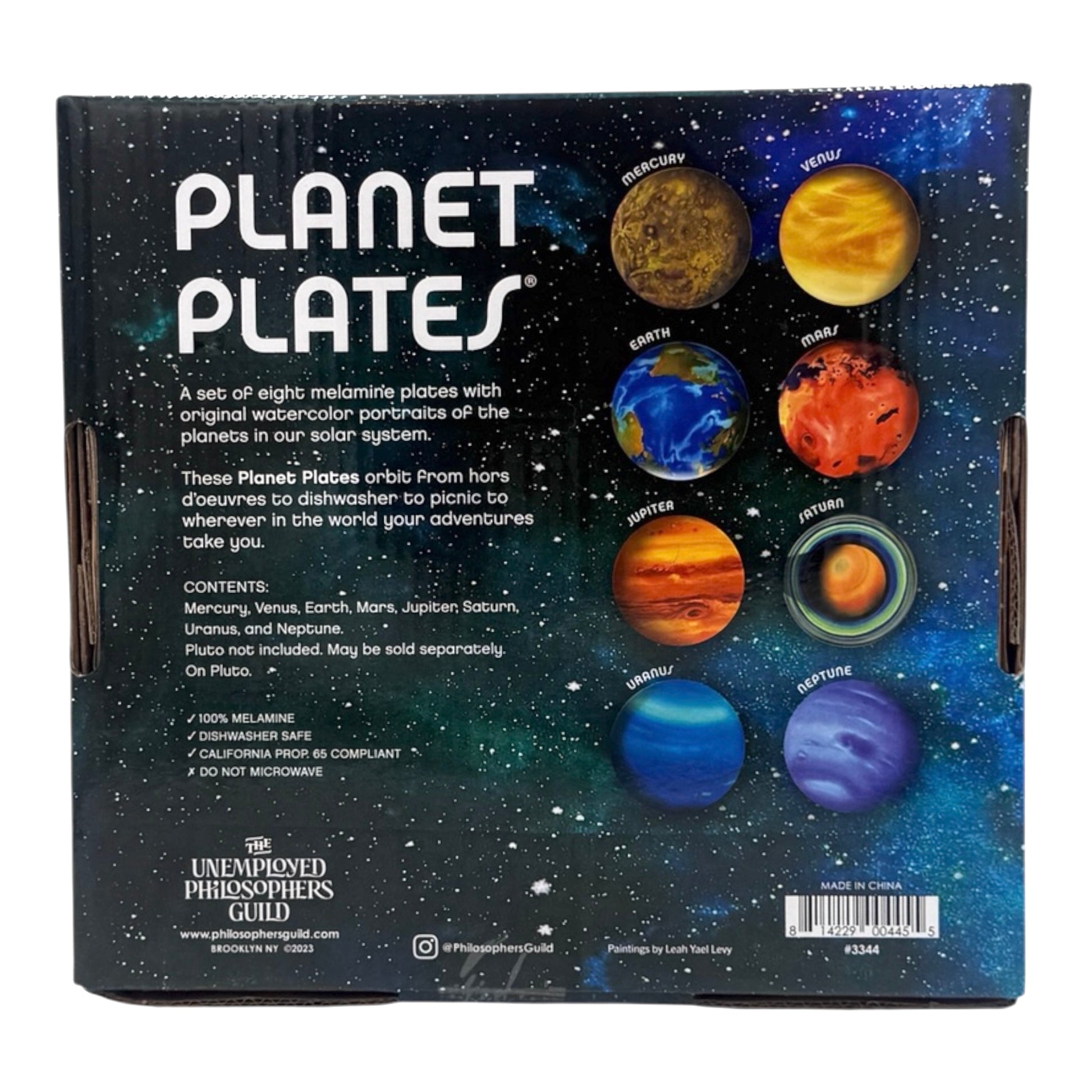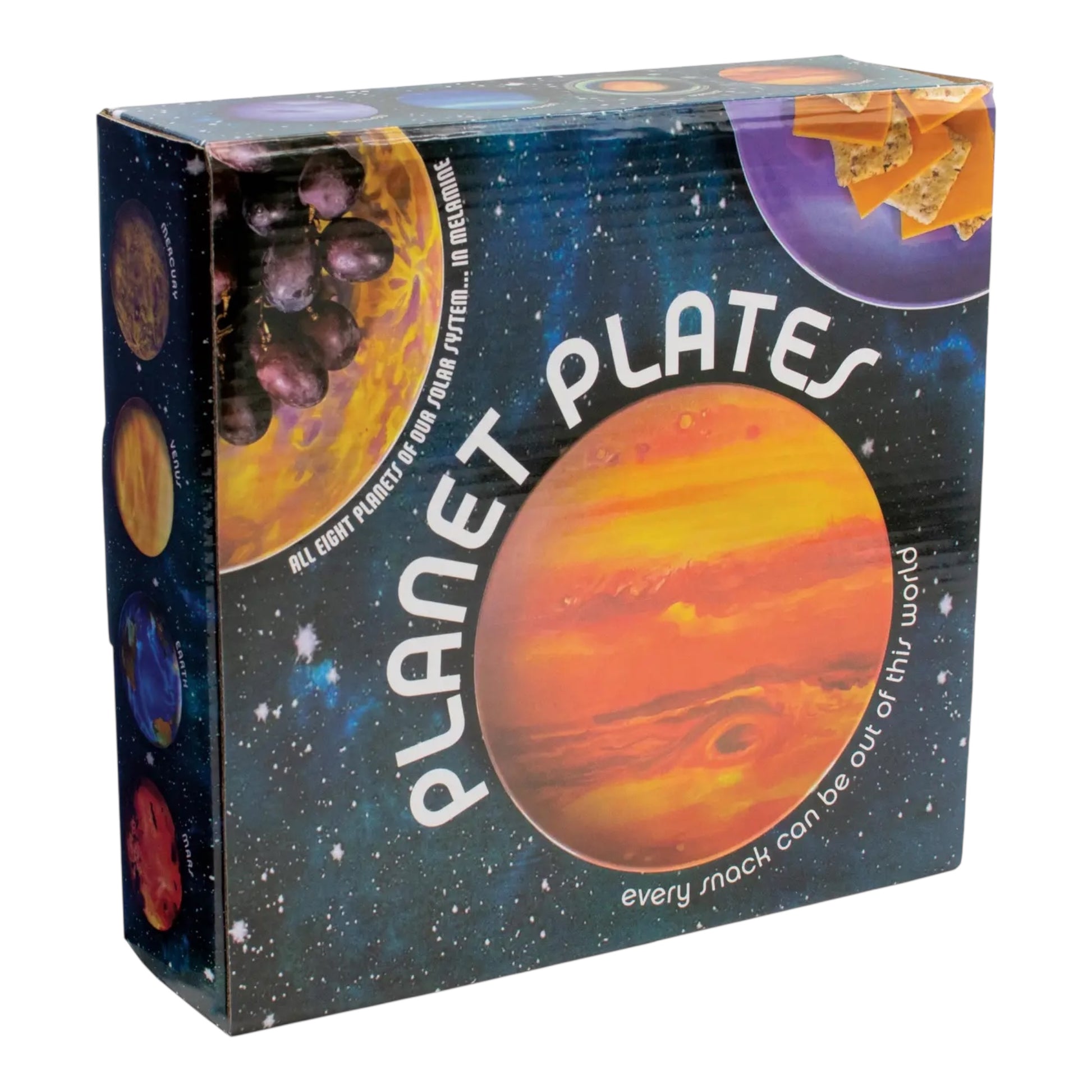 Bring the beauty of the cosmos to your table with Planet Plates, a stunning set of 8 lightweight melamine plates featuring original watercolor portraits of the planets in our solar system. From Mercury to Neptune (sorry Pluto!), each plate is a miniature work of art that orbits effortlessly from your dining room to your next picnic or cocktail party.