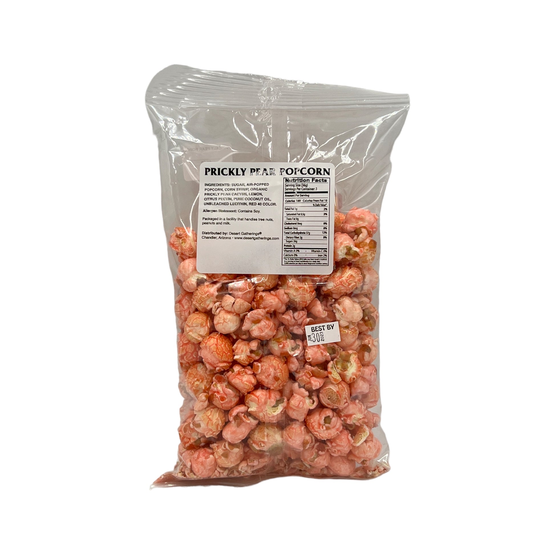 Arizona is well-known for its beautiful cacti including the Prickly Pear. The fruit of this cactus is edible and is often described as tasting like a cross between strawberries, raspberries, and watermelon. This candy coated popcorn captures the irresistible prickly pear flavor. The net weight is 4 ounces. Enjoy a light and fluffy treat that celebrates Arizona!