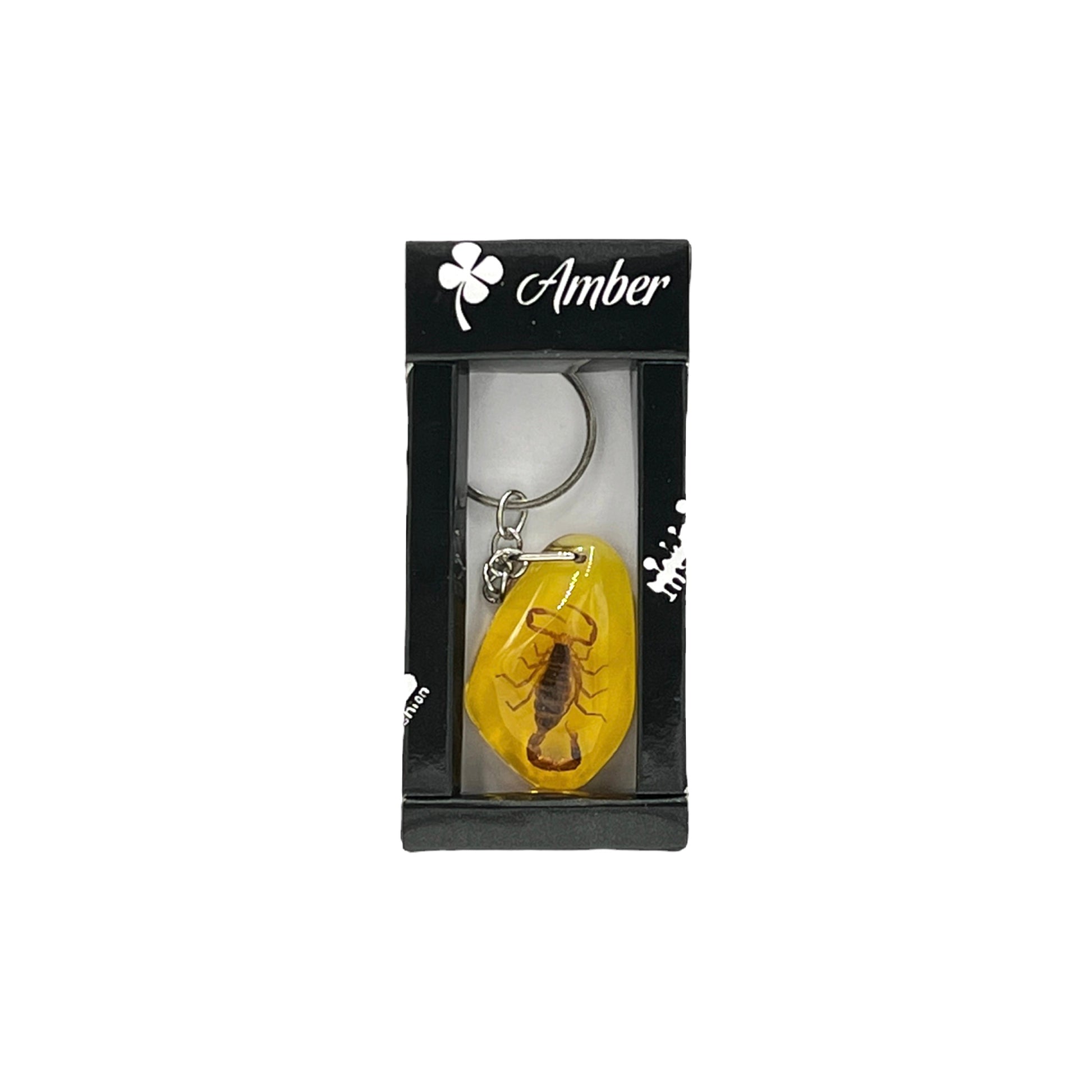 Scorpions are arachnids with 8 legs, a pair of pincers, and a segmented tail that curves over their back. This listing is for 1 amber scorpion keychain. The pendant is approximately 1 inch wide and 1.75 inches long. The keychain's total length is about 4 inches. These pictures are representative of what you will receive, but each specimen is unique and can vary slightly. Here are some fun facts about scorpions: